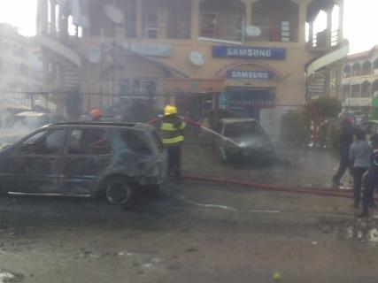 The explosion apparently occurred at the gate of the busy plaza. Many cars are still ablaze. Emergency workers are still arriving